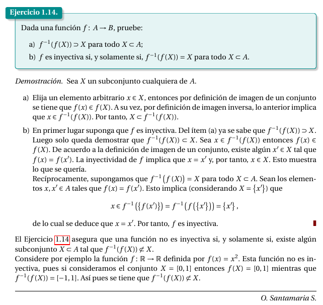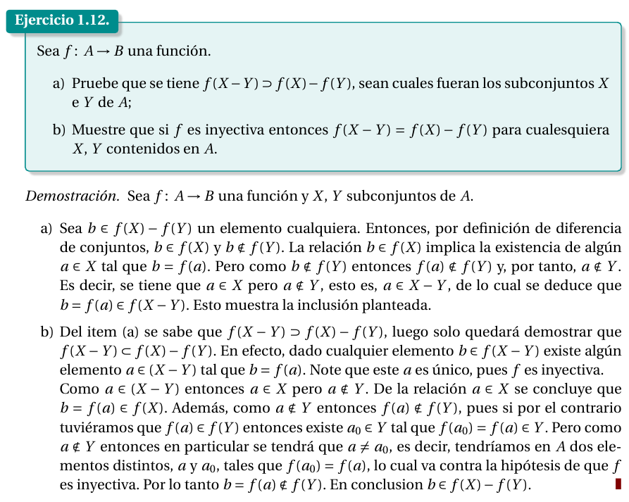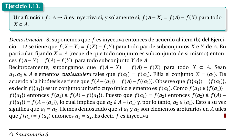 | 13. Una función $f\colon A\to B$ es inyectiva si, y solamente si, $f(A-X)=f(A)-f(X)$ para todo $X\subset A$. Solución |