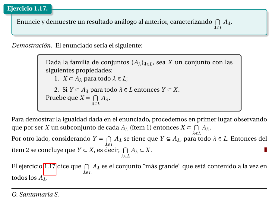 | 17. Enuncie y demuestre un resultado análogo al anterior, caracterizando $\bigcap\limits_{\lambda\in L}A_\lambda$. Solución |