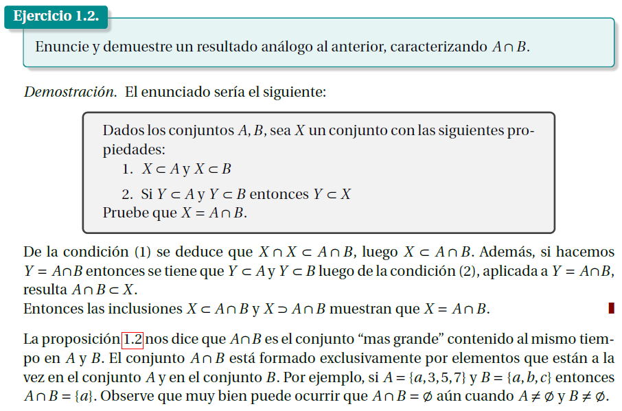| 2. Enuncie y demuestre un resultado análogo al anterior, caracterizando $A\cap B$. Solución |
